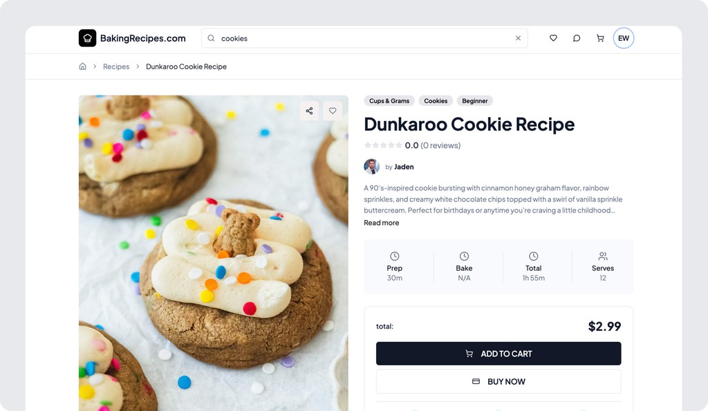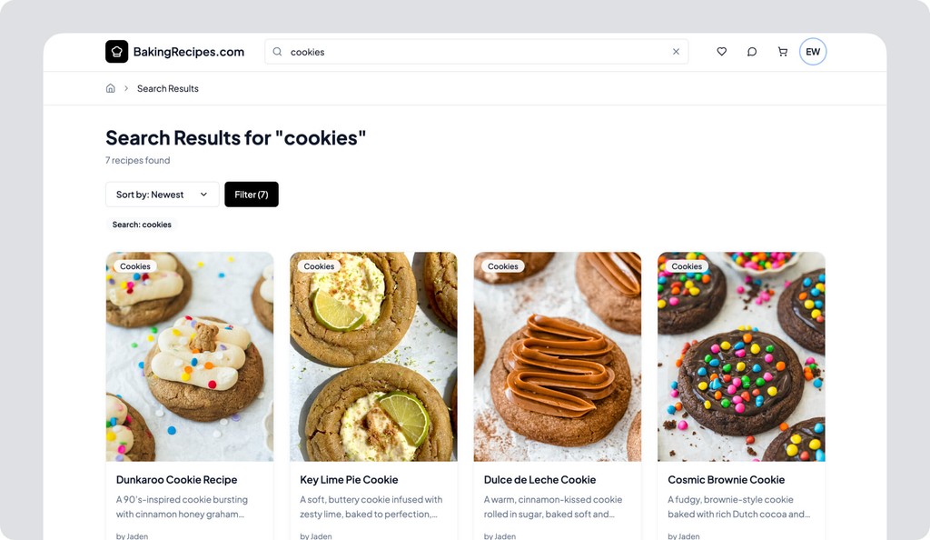 Maxwell set out to create a dedicated marketplace for professional and home bakers to share and monetize their recipes. The platform needed to support visitors, buyers, and sellers with clearly defined navigation, recipe discovery tools, and rich product pages designed around high-quality food photography. Beyond browsing and purchasing, the system required full seller onboarding, recipe creation tools, a submission approval workflow, and a seller dashboard for managing orders, earnings, and messages. Buyers needed a seamless experience for purchasing recipes, saving favorites, reviewing bakers, and downloading PDFs. The goal was to provide a polished, trustworthy environment where recipes could be discovered, purchased, and sold at scale.