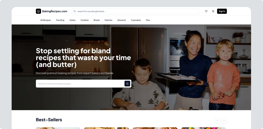 Building a marketplace with three distinct user types required careful coordination of navigation, permissions, and workflows. The platform needed robust recipe listings, advanced search and category filters, trending collections, and product cards optimized for performance and clarity. Recipe detail pages required extensive structured data. Ratings, author profiles, bake times, steps, equipment, and downloadable PDFs, while also supporting reviews with images. Seller tools added additional complexity: onboarding flows, Stripe Connect integrations, multi-step recipe creation, draft and pending states, order management, stats, education modules, and a full messaging system between buyers and sellers. Administrators needed controls for approving recipes, reviewing flagged content, and monitoring marketplace analytics. Ensuring all of these layers worked together smoothly while maintaining a clean shopping experience was a central challenge.