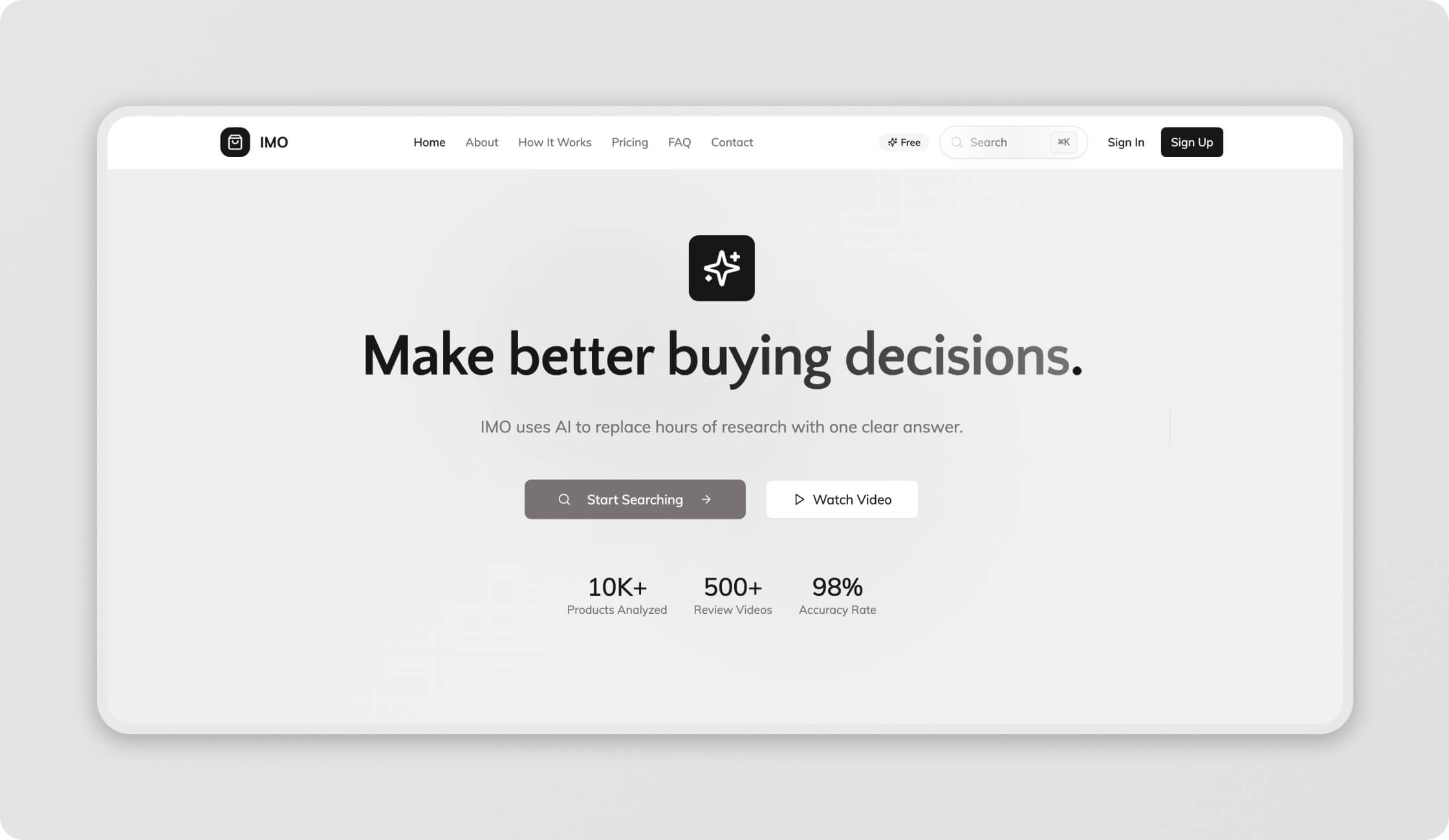The idea for IMO came from a simple frustration: online reviews can’t be trusted anymore. The founder wanted to fix that by creating a smarter way for shoppers to research expensive products without getting lost in fake ratings and endless YouTube rabbit holes. The vision was an AI-powered assistant that could pull real product data from Amazon, surface authentic video reviews from YouTube and TikTok, and instantly summarize everything into clear insights. Honest opinions, powered by real data.